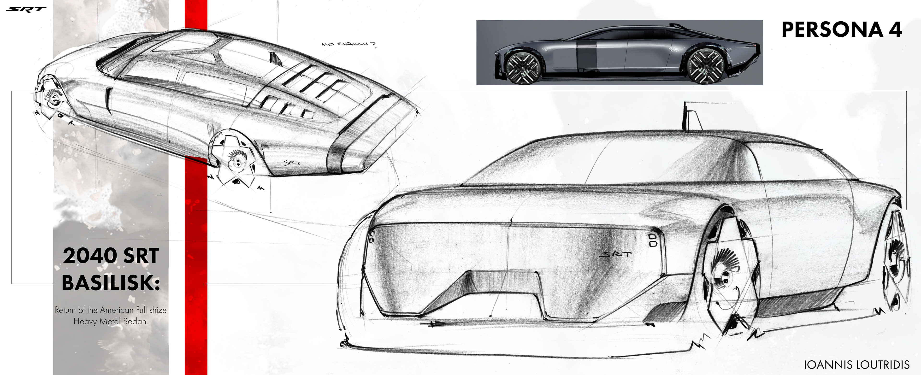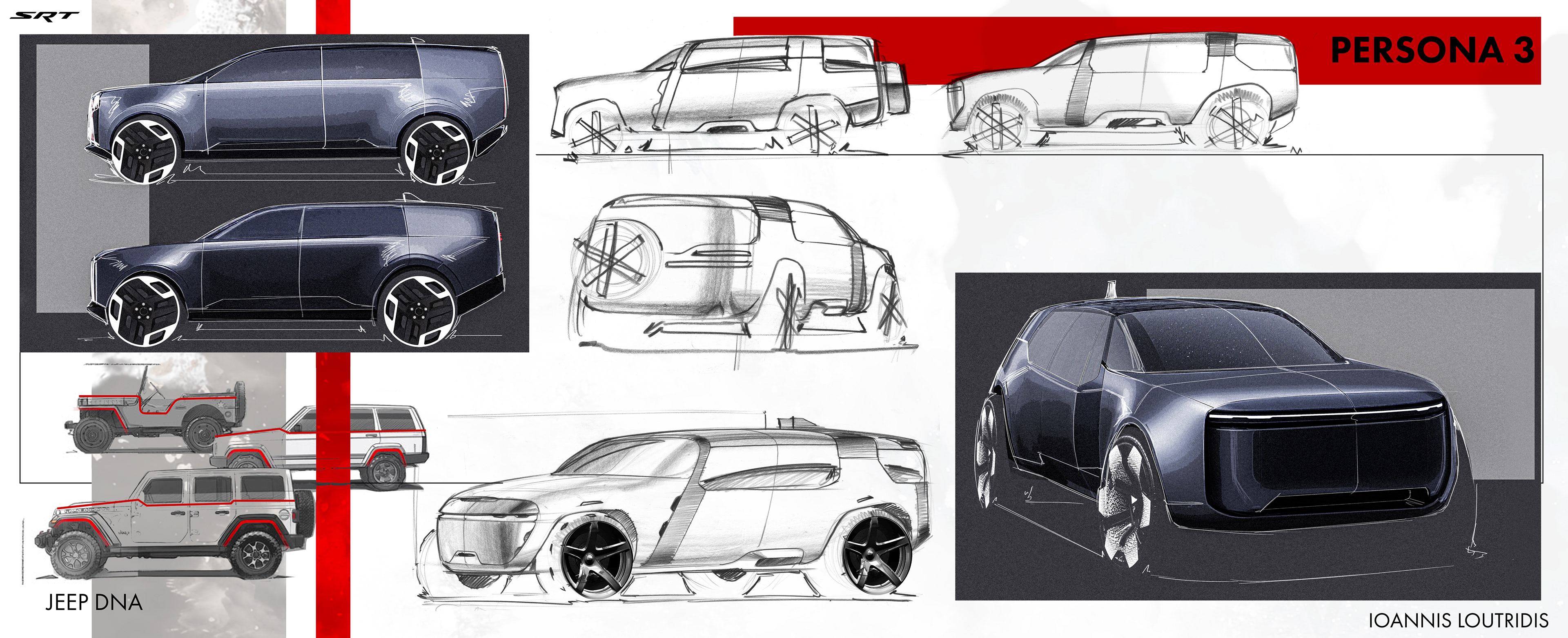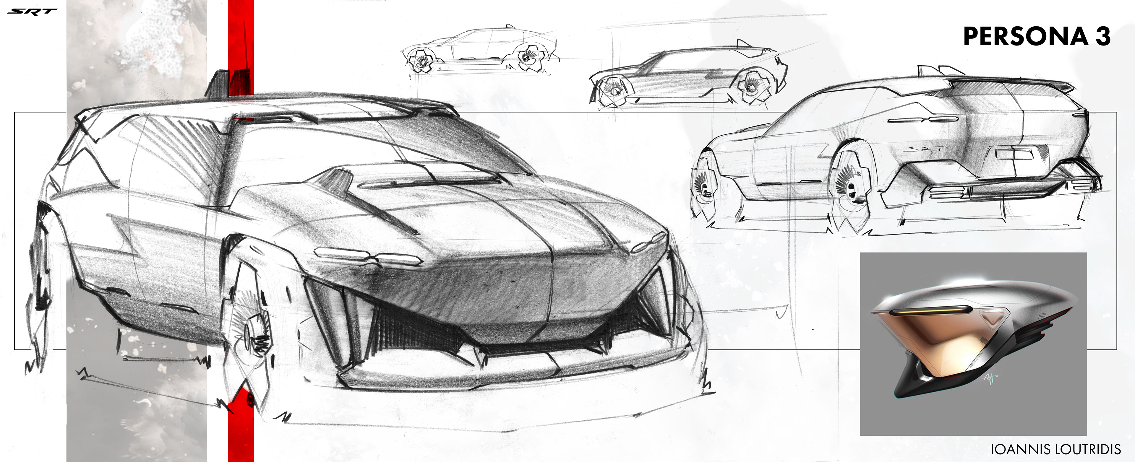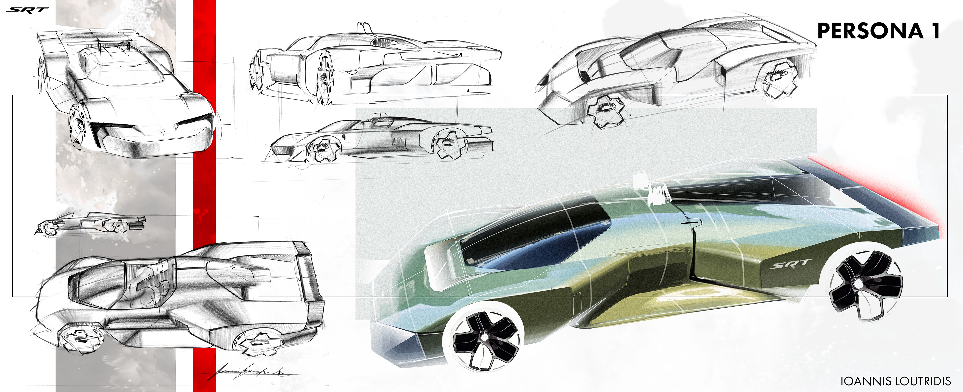 Here you'll find some of the sketches and renderings done during the Fall 2025 semester during a Stellantis Sponsored Studio. Exploring future possible directions for SRT as a standalone brand. The full project will be uploaded later this year!
