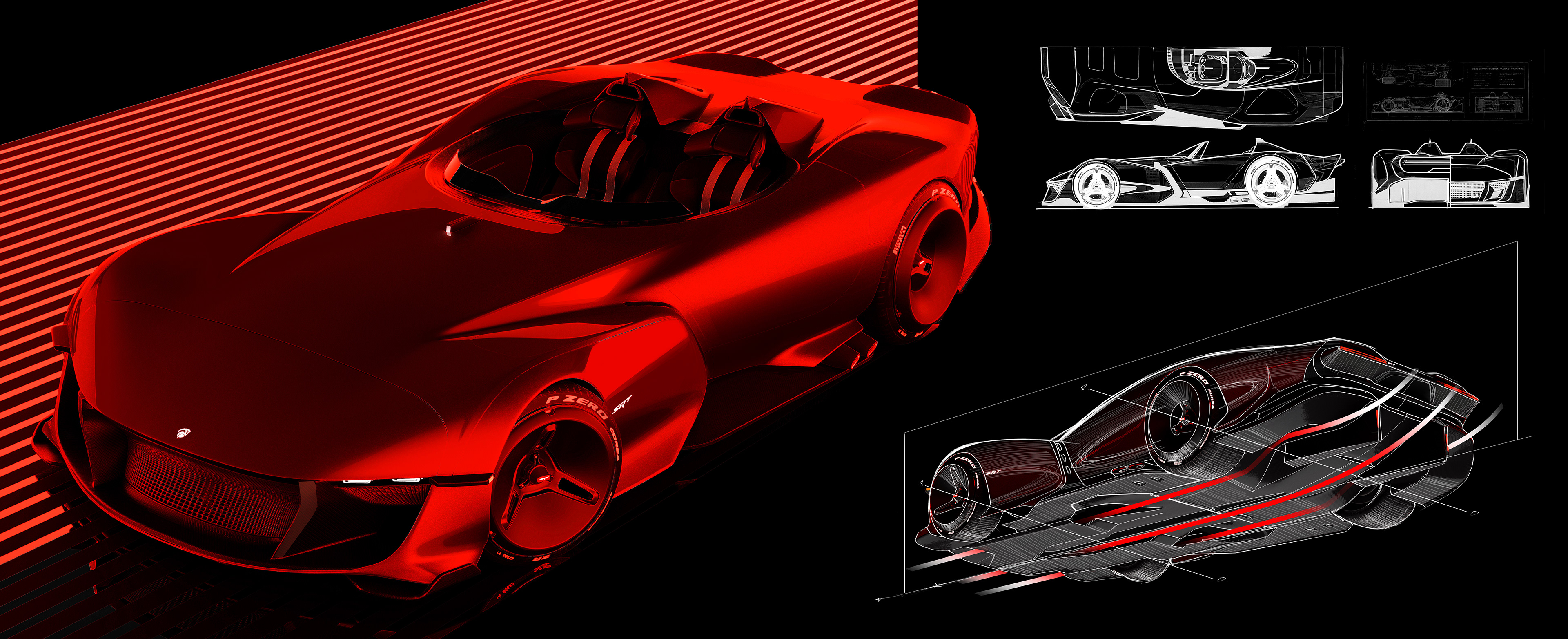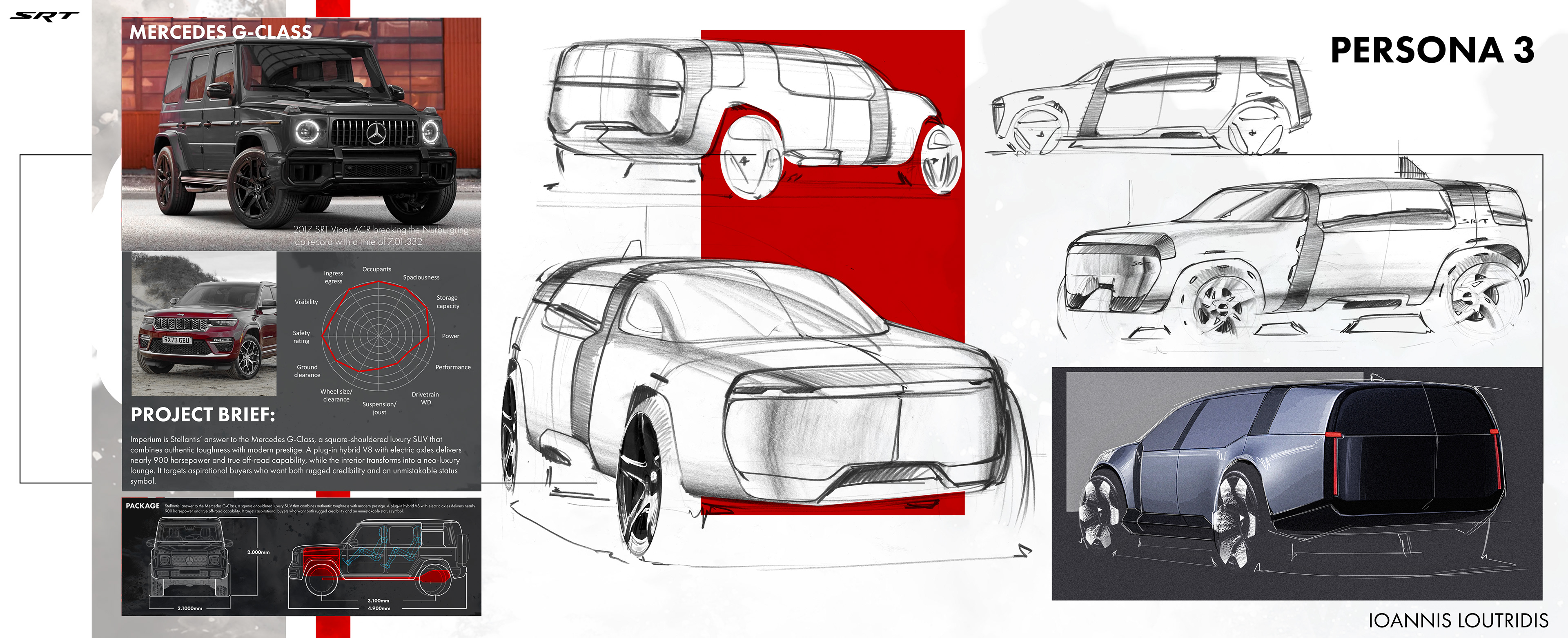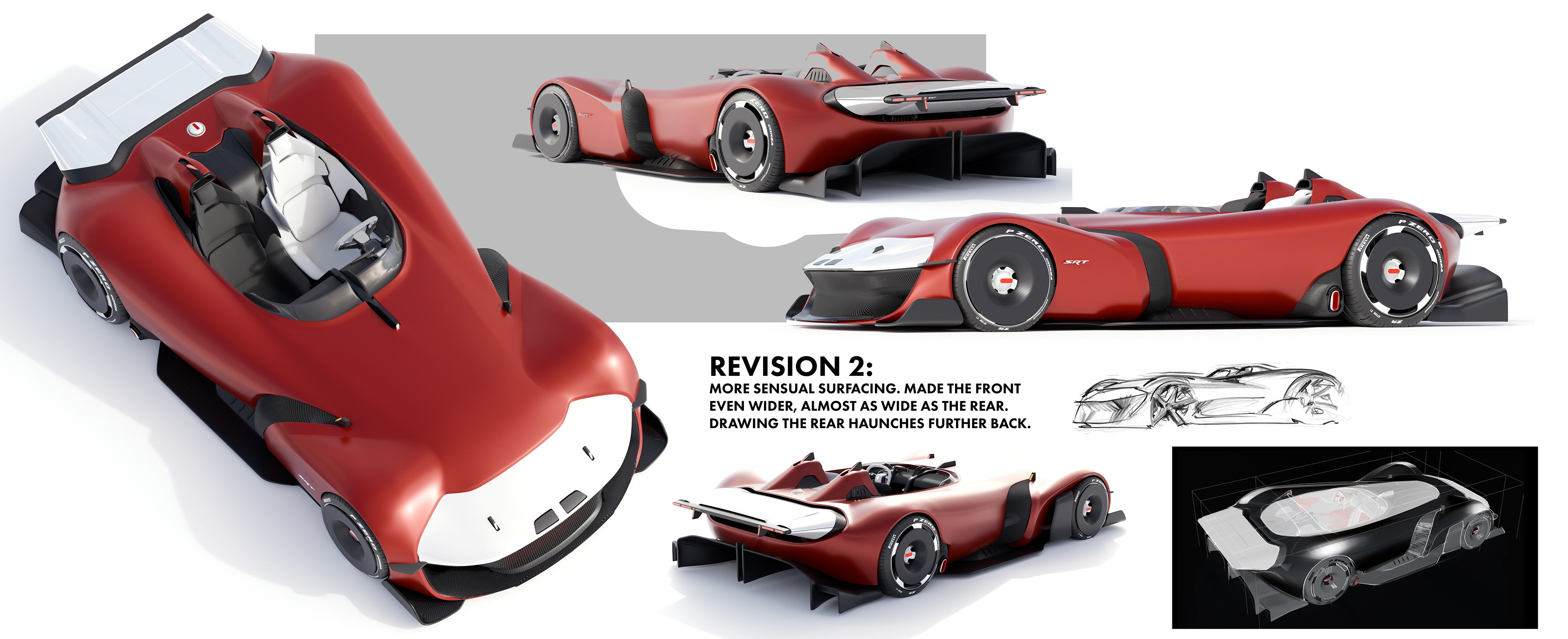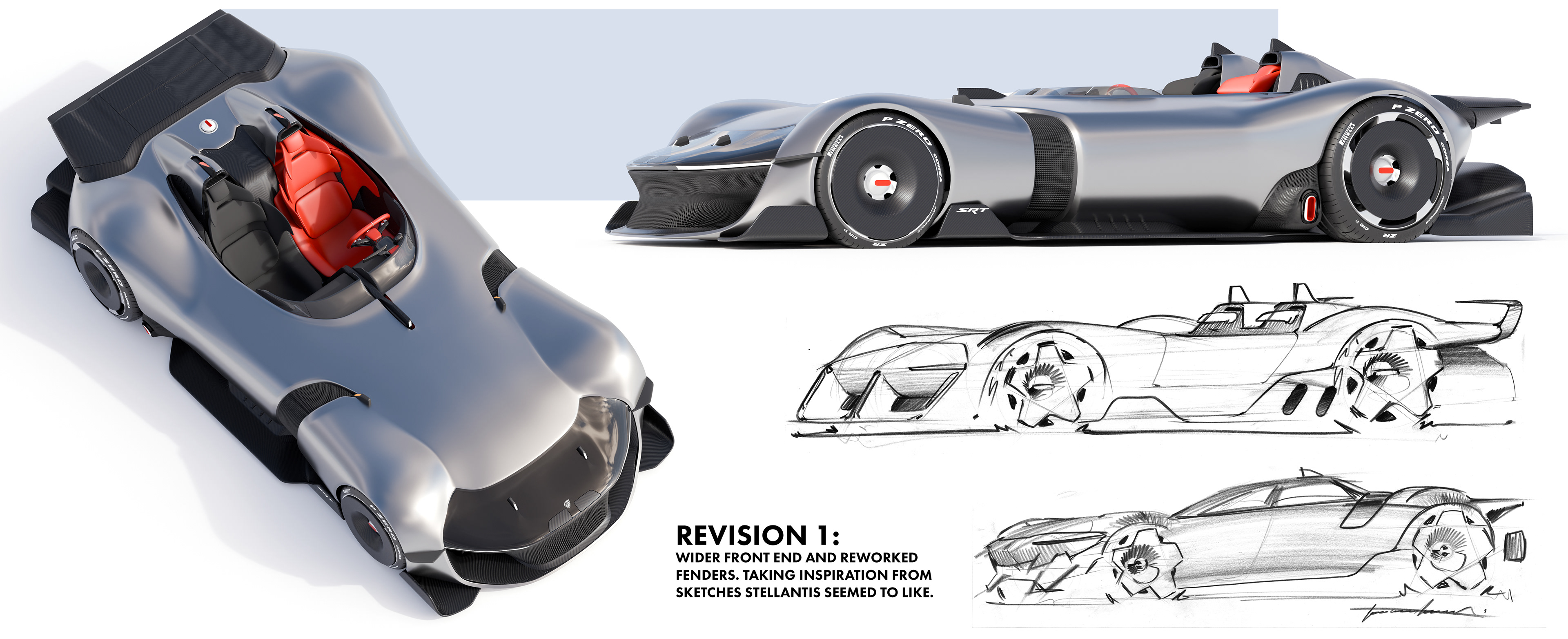 Here you'll find some of the sketches and renderings done during the Fall 2025 semester during a Stellantis Sponsored Studio. Exploring future possible directions for SRT as a standalone brand. The full project will be uploaded later this year!